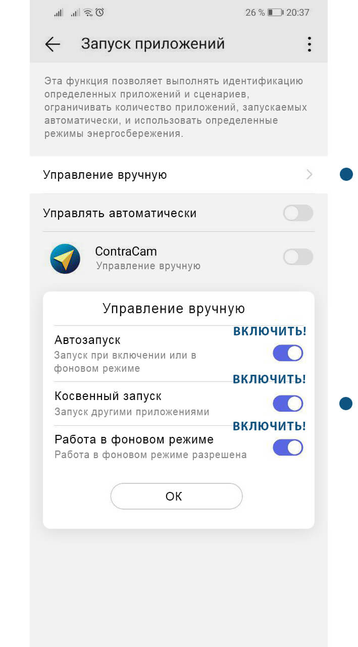 препятствует отображению уведомлений о камерах в фоне. Если вы не видите эти уведомления, то выполните эту